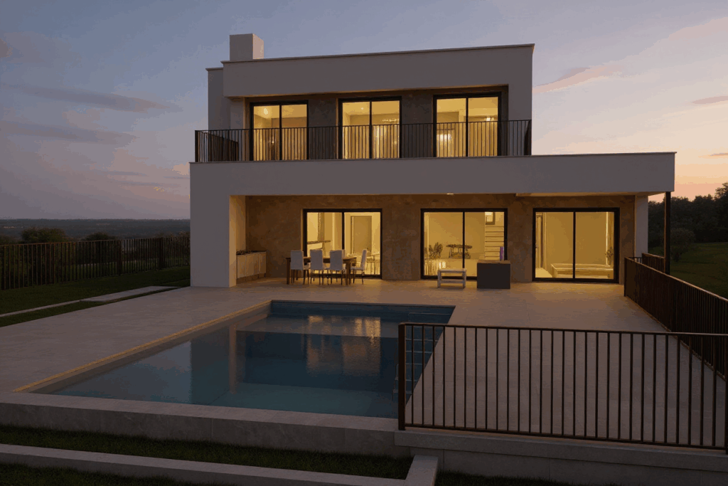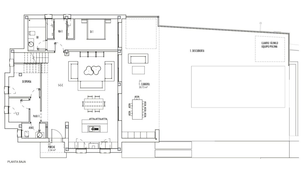 The heart of the home is its large living–dining area with an open-plan kitchen, a modern and welcoming space ideal for spending time with family and friends. The layout allows for plenty of natural light and a seamless connection with the outdoor areas.